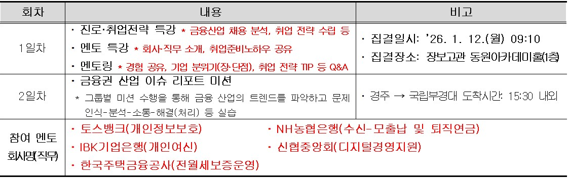 <부경커리어멘토단 멘토링 캠프(금융권) 프로그램 신청 안내>