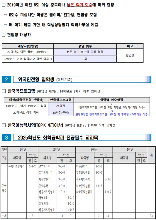 2022학년도 기준부터 화학공학과 졸업인증제가 적용되오니 재학생들은 졸업요건에 맞게 이수하시길 바랍니다.