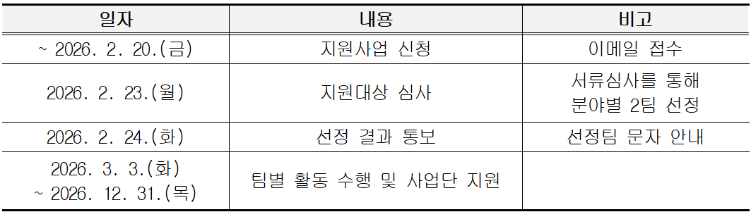 ※ 사업단 운영 상황에 따라 일정이 변경될 수 있음. |