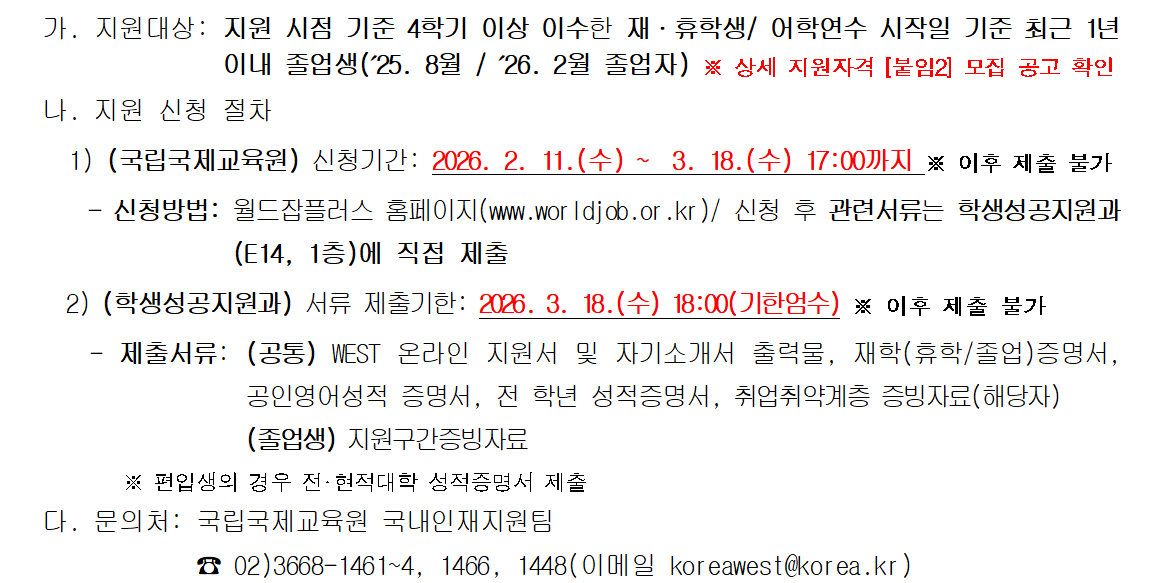<2026년 상반기 한미대학생(WEST) 참가자 모집 안내>