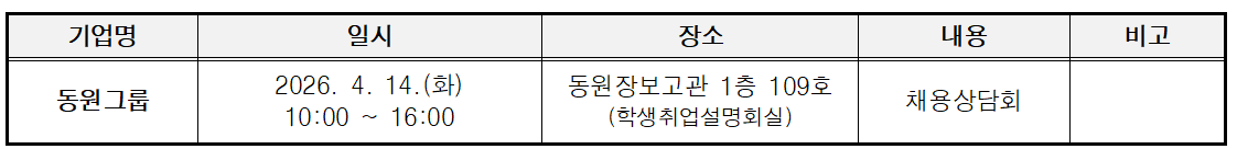 동원그룹 채용상담회 개체를 다음과 같이 합니다.