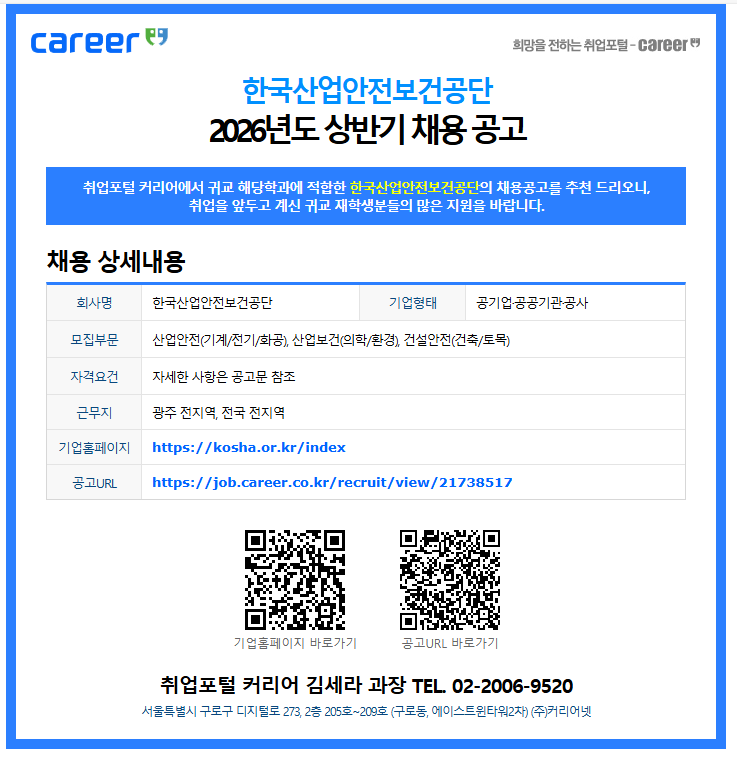 < 2026년도 안전보건공단 상반기 채용 공고(~3/9)>